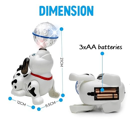PREMIUM MATERIALS: This toy dog for boys and girls is made of high-quality non-toxic and burr-free plastic. The dog’s body curves are smooth and round to avoid hurting the soft skin of your baby. Power Source: It requires 3xAA batteries (not included)