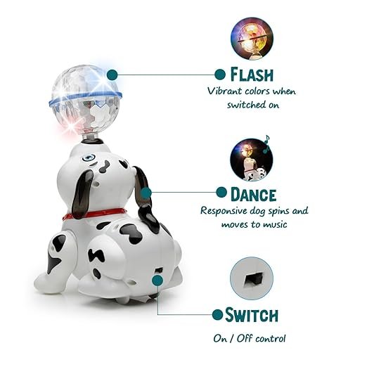 DEVELOPS COLOR RECOGNITION: This dancing dog toy serves an educational purpose with multiple features that teaches your kids about different parts of the color increasing the knowledge base of your kid. It is highly visually stimulating showing your baby a bunch of colors and lights. Develops hand eye coordination and visionary skills.